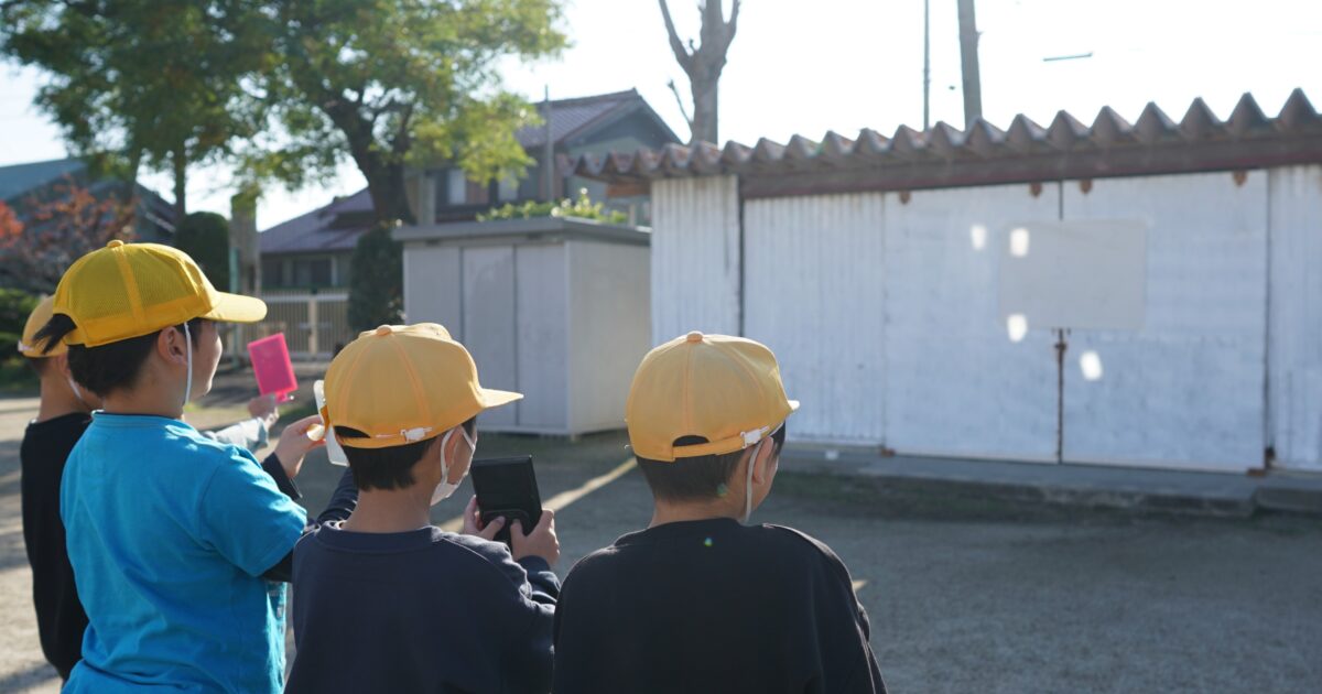 かがみではね返した日光を的に当てたり、かがみを手前にかたむけ日光を地面にはわせたり、はね返した日光をほかのかがみではね返してつないだりして日光の進み方を調べました。