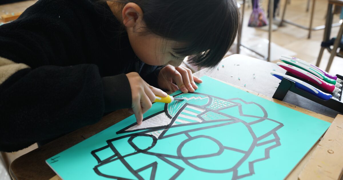 下絵を写し取り、いよいよ彫刻刀の出番です。 まず、部屋の内側の線を三角刀で彫り、境目をはっきりさせます。境目が彫れたら彫刻刀を使い分けながら、思いのままに模様を彫っていきます。彫り跡の間隔や形、繰り返し方などを工夫しなが […]