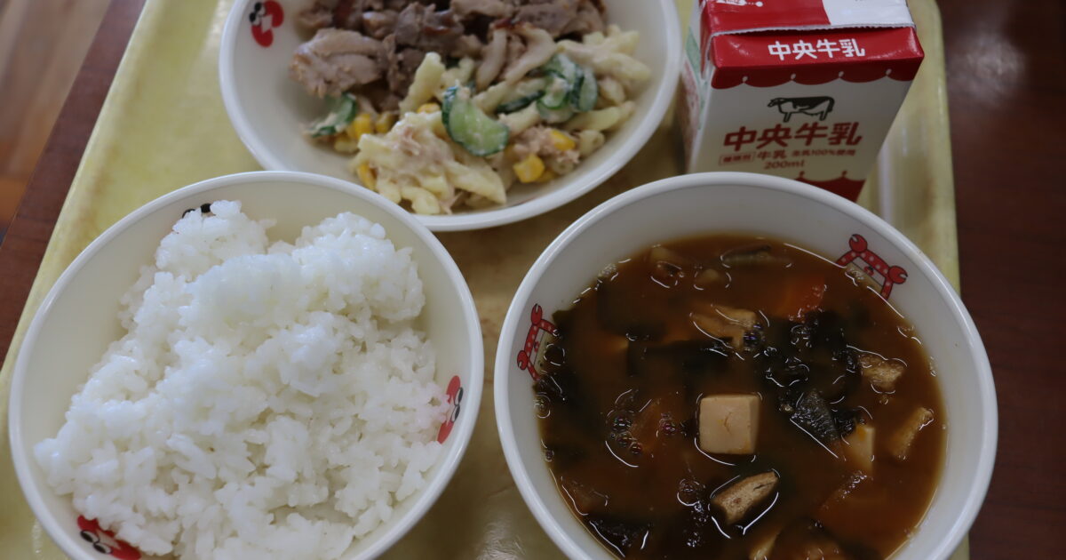 【献立】牛乳、ご飯、豚肉の生姜焼き、マカロニサラダ、かぼちゃとわかめの味噌汁 〈わかめ〉 わかめは乾燥品や塩蔵品があるので、1年中食べることができますが、旬は春です。早春から生のわかめが多く出回ります。 また、わかめは食 […]