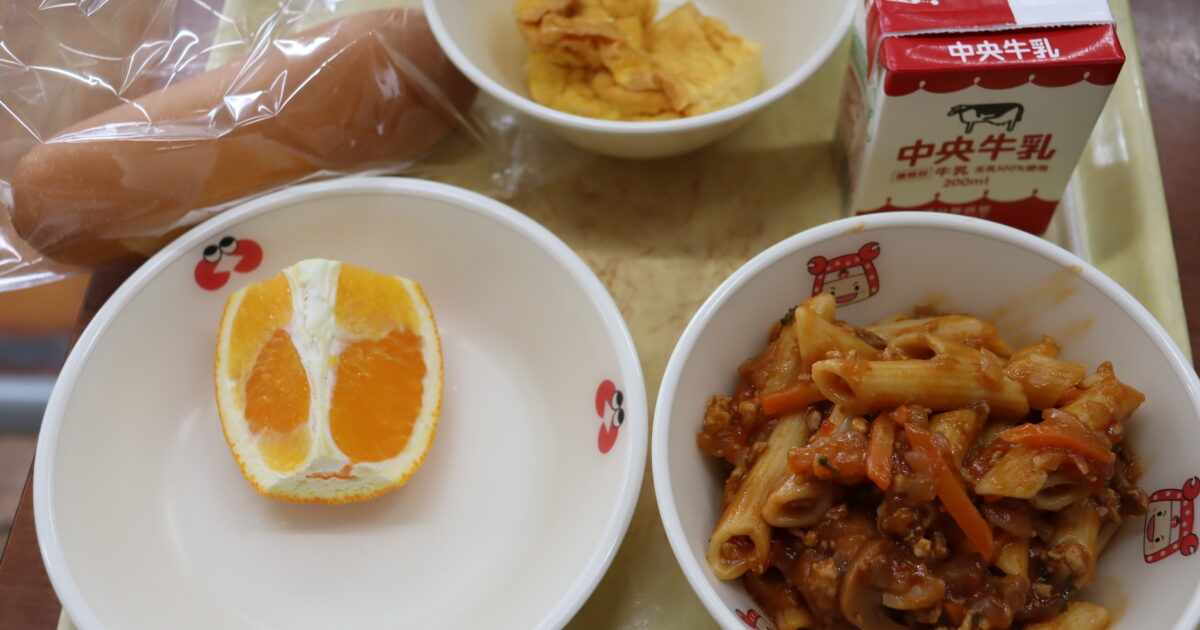 【献立】牛乳、小型ロールパン、ペンネのミートソース、手作りオムレツ、清見オレンジ 〈清見オレンジ〉 清見オレンジは、オレンジのような香りとたっぷりの果汁が特徴です。 みかんとオレンジを交配して作られました。おいしいだけで […]