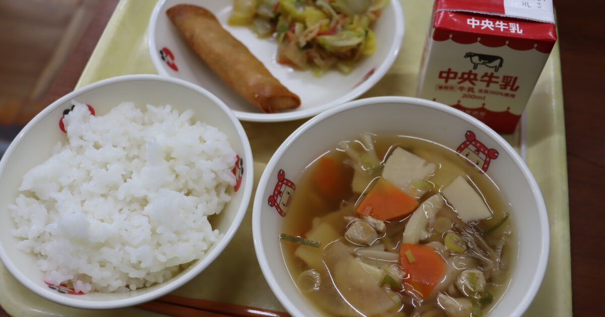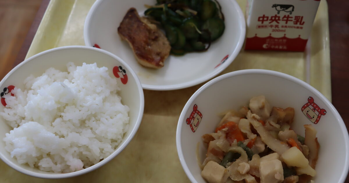 【献立】牛乳、ご飯、ちくわの紅しょうが揚げ、ひじきサラダ、いものこ汁 〈里芋〉 今日の給食の汁物は、里芋が入った岩手県の郷土料理「いものこ汁」です。 里芋は、親芋を囲むように子芋や孫芋が育つので、豊作や子孫繁栄の象徴とも […]