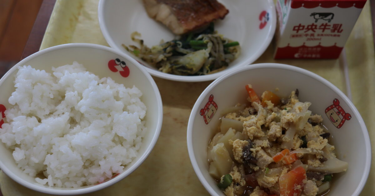 【献立】牛乳、ご飯、めばるの煮つけ、おやこ煮、ほうれん草のいそか和え 〈食育献立〉 今日は食育献立です。地場産物をたくさん使いました。 地場産物とは、地域でとれる食べ物のことです。さらに、地域でとれる食べ物をその地域で食 […]