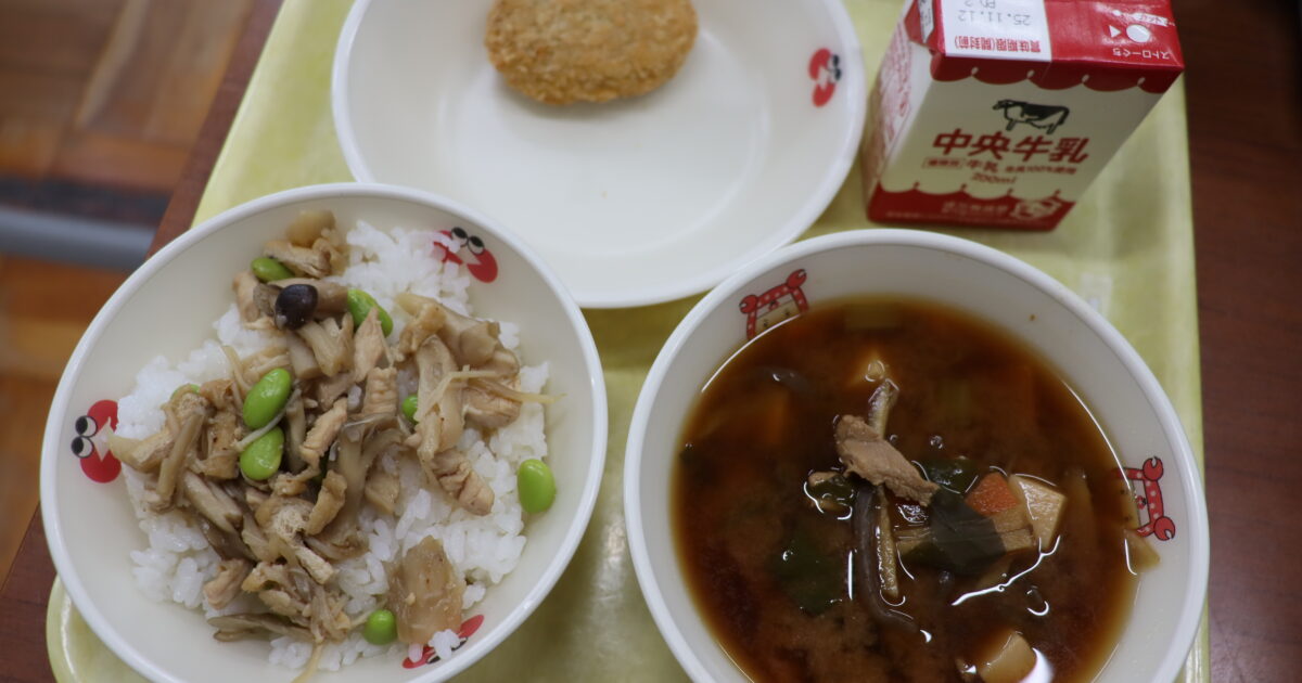 【献立】牛乳、ご飯、秋のかおりご飯の具、さつまいもコロッケ、豚汁 〈秋の味覚〉 「秋の味覚」という言葉を聞いたことはありますか?秋の味覚というのは、秋においしく食べられるもののことです。 今日は秋においしい、まいたけ、え […]
