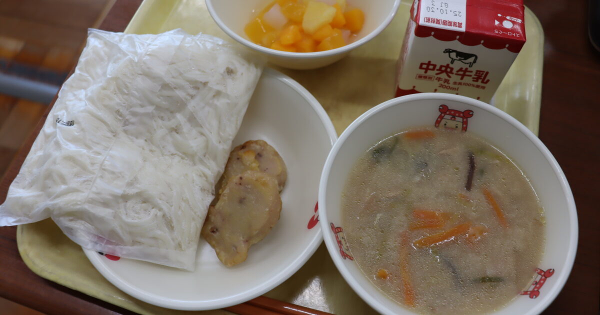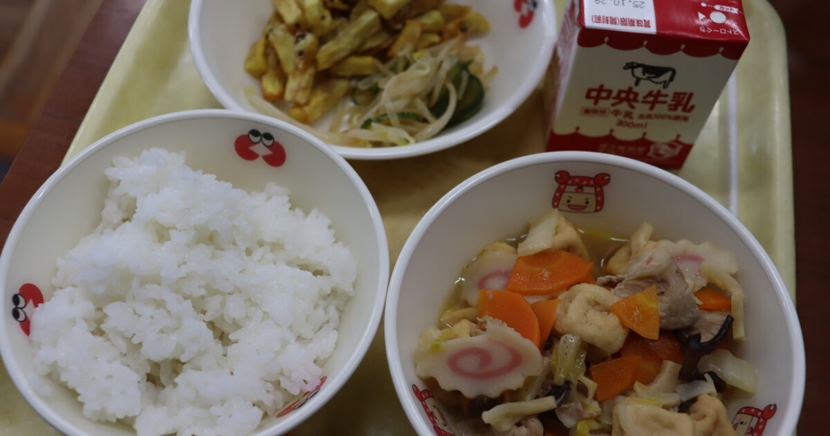 【献立】牛乳、ソフト麺、豆乳ちゃんぽんの汁、たこナゲット、みかんゼリーポンチ 〈豆乳ちゃんぽん〉 ちゃんぽんは、長崎名物の麺料理です。 長崎の中華料理店の店主が、鍋で野菜や肉を炒め、そこに中華麺を入れて濃いめのスープで煮 […]