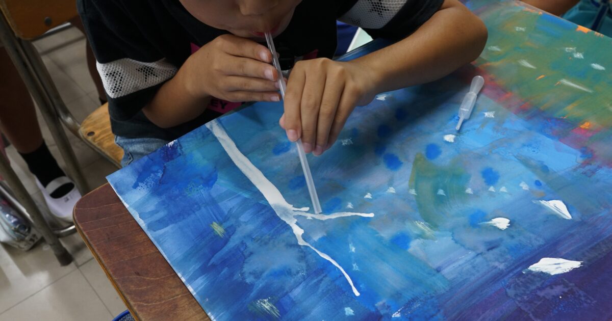 筆に絵の具を含ませて紙に塗るのが絵の具で色をつける基本的な方法ですが、今回は白の画用紙にスポンジでたたくように色をつけたり、刷毛のように色をのばしたりして空の色をつけていきます。 青空、朝焼けの空、夕焼けの空、曇り空、夜 […]