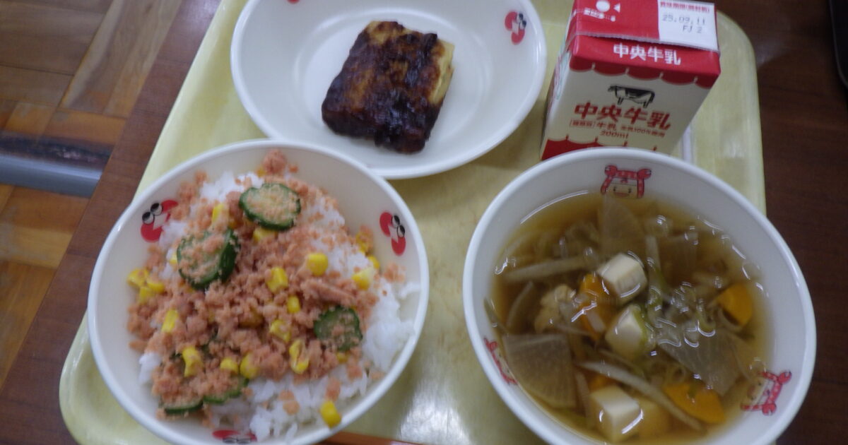 【献立】牛乳、ご飯、鮭ときゅうりの混ぜご飯の具、篠田の甘味噌がけ、けんちん汁 〈鮭〉 鮭は川で生まれ、アメリカやロシアの近くの海まで行って大きくなりますが、卵を産むために自分の生まれた川に戻ってきます。たくさんある川から […]