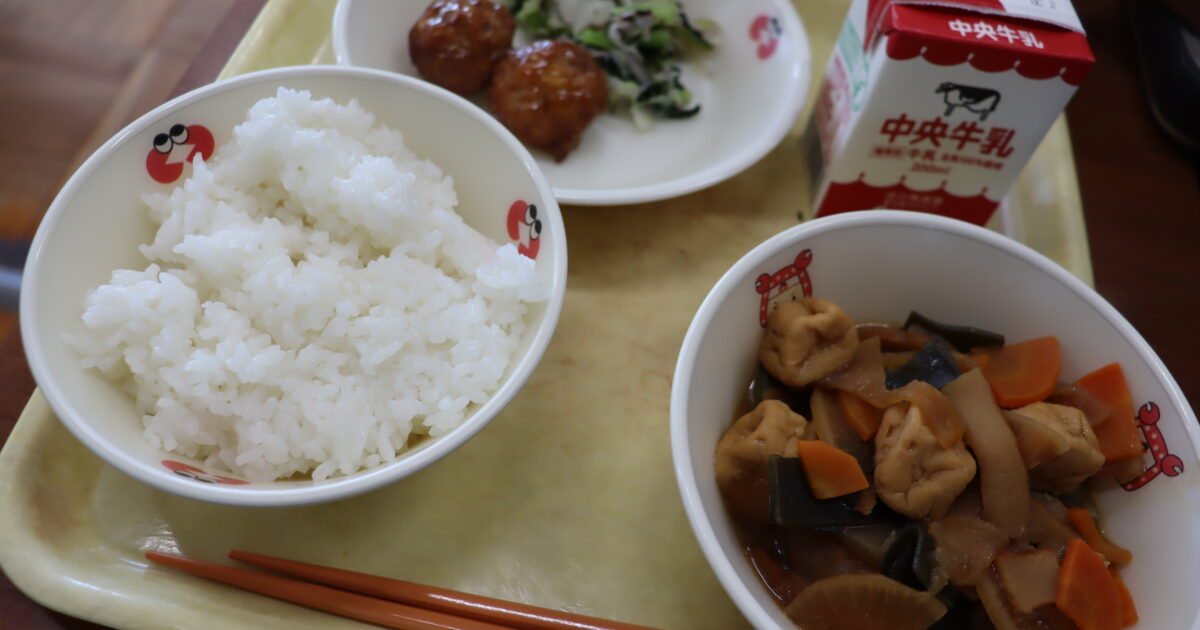 【献立】牛乳、ご飯、愛知の肉団子、大根のみそ煮、小松菜の赤じそ和え 〈食育献立〉 今日の給食は、食育献立です。 愛知県産の大豆とれんこんが入った「愛知の肉団子」、愛知県で昔から食べられてきた豆みそを使った「大根のみそ煮」 […]