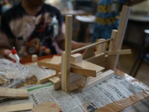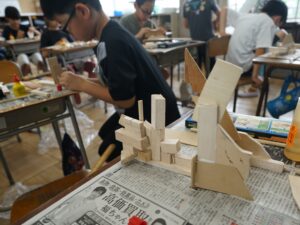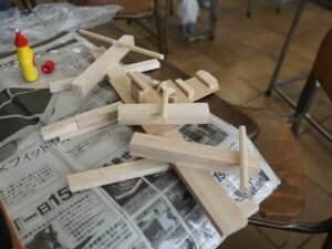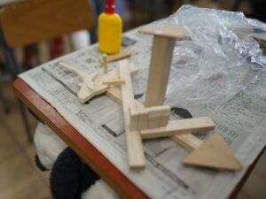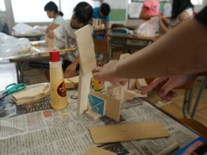 4年生 9月11日(木)4年生 図画工作「のこぎりギコギコ 木切れで作ろう“へんてこモンスター”」 2025.09.16 by shinkanie001 思いのままに切った材料(木切れ)を組み合わせたり、つなげたりしながらイメージを膨らませ形にしていきます。 「へんてこモンスター」の完成が楽しみです。