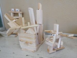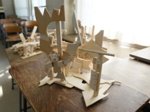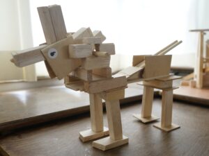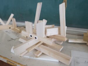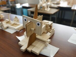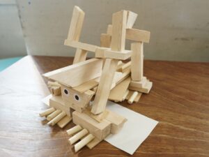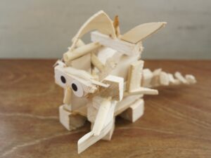 4年生 9月30日(火)4年生 図画工作「のこぎりギコギコ」 2025.10.02 by shinkanie001 オリジナリティーあふれる「ユニークモンスター」が勢ぞろい! 木切れを組み合わせながらイメージを膨らませ、工夫して形にしました。