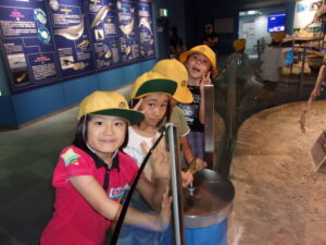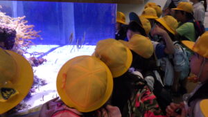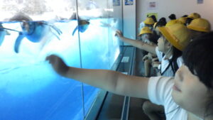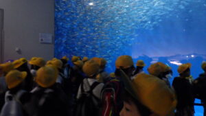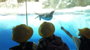 水族館では、ウミガメやペンギン、イワシのトルネードを見学しました。