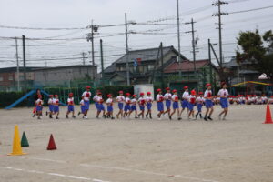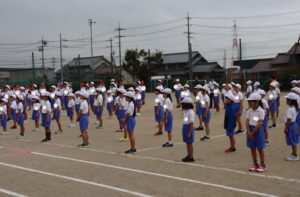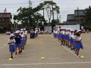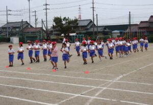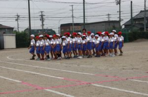 今日は、総練習を行いました。天候が心配だったので、開会式・閉会式・1年競技・1、2年競技・赤白対抗リレーのみ、練習を行いました。