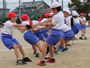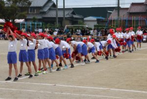 合同競技「咲かせよう、新蟹の花!運ぼう、絆の綱!」は、ポンポンを使って、新蟹の花を咲かせました。絆の縄は、友達を信じて、自分を信じて、無限大の力で力いっぱい縄を引きました !