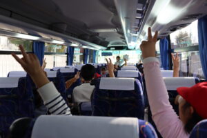 行きのバスでは、担任の先生のバスレクで盛り上がりました!