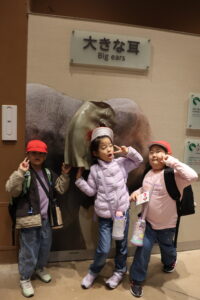東山動物園ではゾウやキリンなど、たくさんの動物を見学しました。