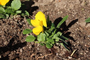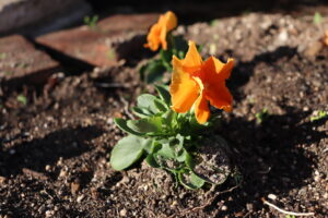黄色のパンジーの花言葉は「幸福」。オレンジ色のパンジーの花言葉は「楽しい思い出」です。