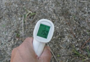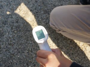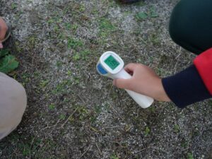 日なたと日かげの地面のあたたかさの違いについて、もっと詳しく調べるため午前10時ごろと正午ごろに同じ場所でそれぞれの温度を測ってみました。