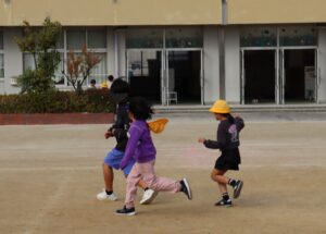 放課の時間は、運動場で、一緒におもいっきり遊びました!