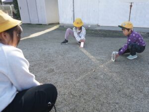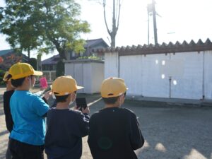 3年生 11月14日(金)3年生 理科「はね返した日光」 2025.11.20 by shinkanie001 かがみではね返した日光を的に当てたり、かがみを手前にかたむけ日光を地面にはわせたり、はね返した日光をほかのかがみではね返してつないだりして日光の進み方を調べました。