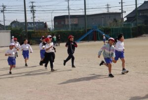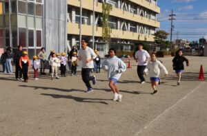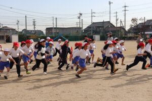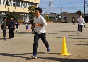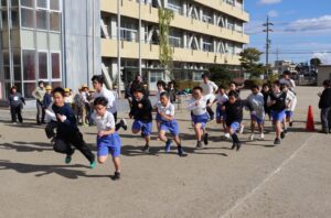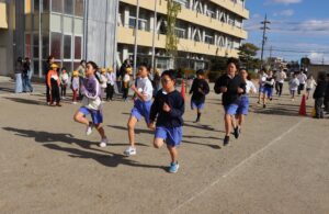 低学年は2周、中学年は4周、高学年は6周走って、順位を競い合いました。