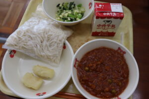 【献立】牛乳、ソフト麺、ミートソースの具、いかフリッター、チーズサラダ