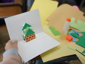4年生 12月5日(金) 4年生 図画工作「幸せを運ぶカード」 2025.12.10 by shinkanie001 「幸せを運ぶカード」の制作が始まりました。 今回の題材「幸せを運ぶカード」では、だれに、どんな気持ちを伝えたいかを考えて、もらった人も贈った人も楽しく・嬉しくなるような作品を飛び出す仕組みを使って作ります。