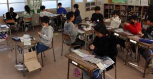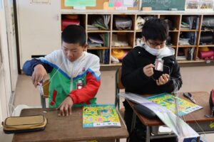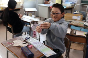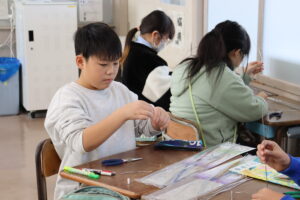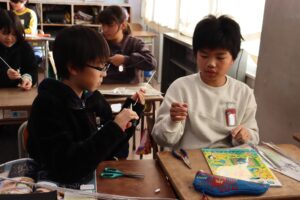 5年生は、図工の授業で「美しく立つはり金」を学習しています。