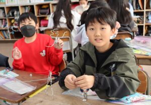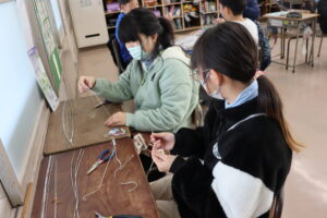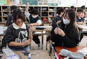 ペンチの使い方や、針金の形を変える方法(曲げる、よじる、切る、巻く、合わせるなど)を学習しました。