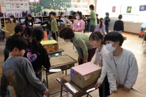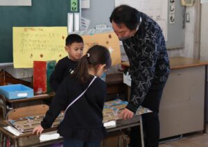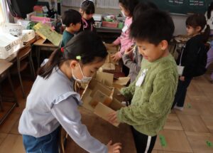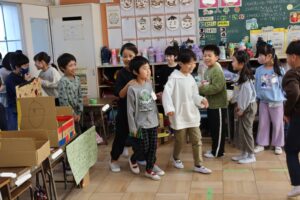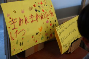 グループの中で、お店の人とお客さんに分かれて、あきまつりスタート!!
