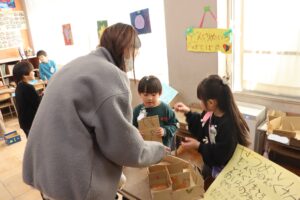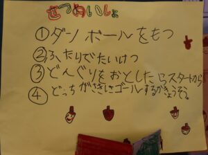 どんぐりめいろやまつぼっくりけん玉など、秋のものを使った手作りおもちゃでたくさん遊ぶことができました。