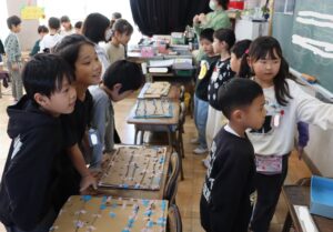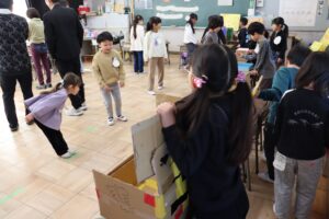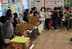 木曜日、1年生は生活科の学習で「あきまつり」を開きました。