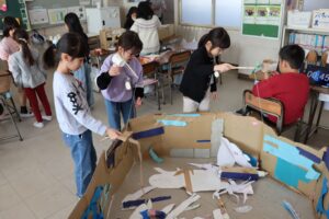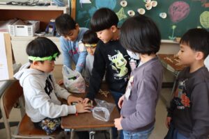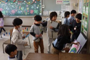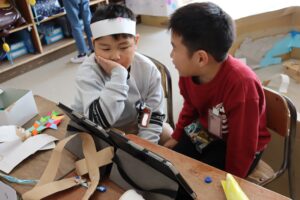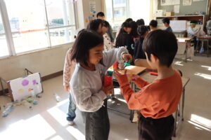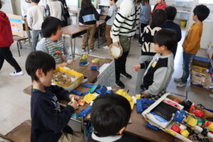 2年生は、これまで生活科「せかいでひとつ わたしのおもちゃ」の学習で、身近なものを利用したおもちゃを作ってきました。