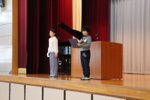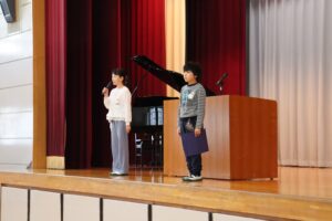 また、4年生の代表児童が「2学期に頑張ったこと、3学期に頑張りたいこと」を話しました。