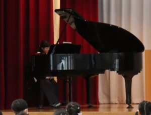 久しぶりの学校で緊張していたと思いますが、全校児童の前で、自分の声で一生懸命話していました。高学年として頑張っていきたいという気持ちが伝わってきました。