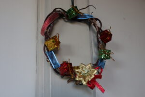「サツマイモのつるでリースを作りました。飾ってください。」