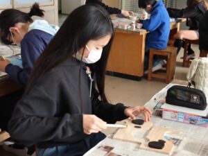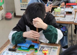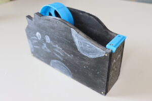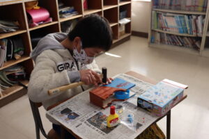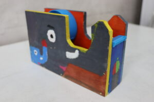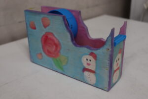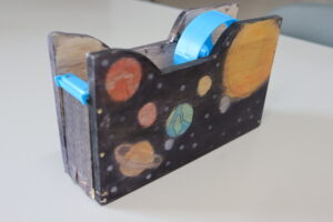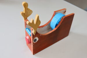 2学期からこつこつと作り上げてきた、大人になってもずっと使えるようなテープカッター。