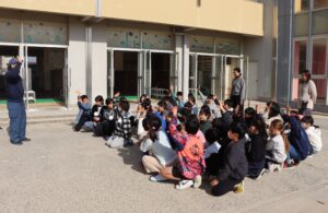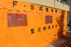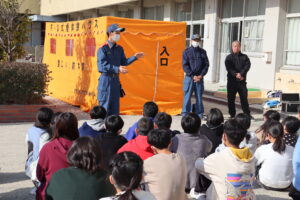 昨日は「家庭消火器点検の日」。蟹江消防署の方に来ていただいて、2・4・6年生が煙体験を行いました。