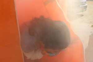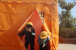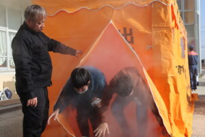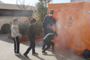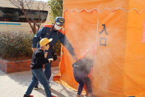 火事が起きたとき、煙の中からどのように逃げればよいかを教えていただきました。