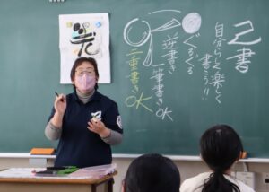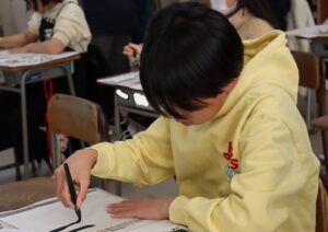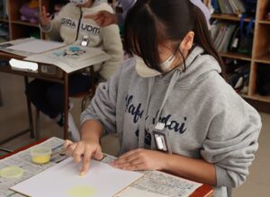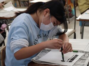 卒業制作で「己書(おのれしょ)」に取り組む6年生です。