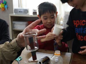 前回の実験で電気を通したスチール缶、1円玉、10円玉などの金属は磁石につく?つかない?…。