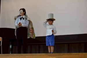 体育館いっぱいに集まった子どもたちと、しんぶんマンとのジャンケンは、勝っても負けても大騒ぎでした。決勝戦を制した子には、しんぶんマンからステキなプレゼントが渡されました。