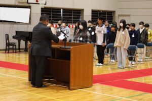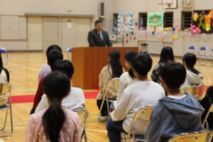 校長先生からは「明日の卒業式では、返事・所作・別れのことばなどどんな形でもよいので、お世話になった方々に『ありがとう』の気持ちを伝えてください」というお話がありました。
