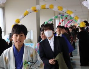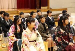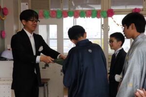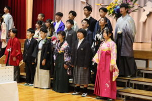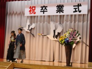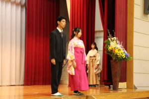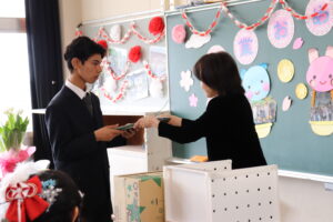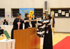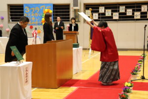 保護者・来賓の方々が見守る中、将来の希望や夢を語る卒業生一人一人に学校長が卒業証書を授与しました。
