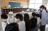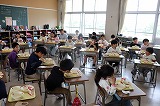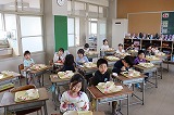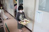 写真は今日の給食と2年生の給食の時間のようすです。