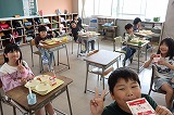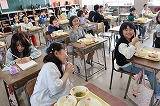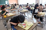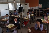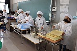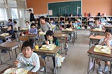 写真は3年生の給食のようすです。