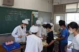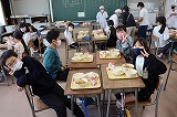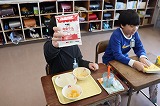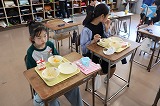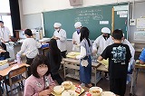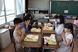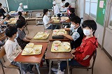写真は5年生の給食の時間のようすです。高学年らしく,手際のよい丁寧な準備・片付けが行わていました。