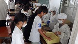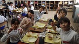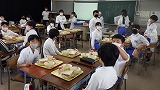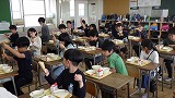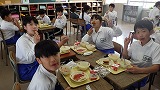 【給食センターより】蟹江町の学校給食では,地域の活性化と,みなさんに地域でとれる食品について知り,親しんでもらうために毎月19日前後に愛知県産の食材を多く取り入れた「食育献立」を実施しています。今日は4月の「食育献立」の日です。今日の給食は,愛知県産のいちご,キャベツ,玉ねぎを使いました。地元の生産者の方々が心を込めて作った食材を,感謝しておいしくいただきましょう。