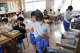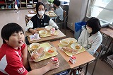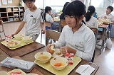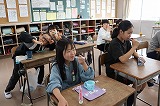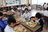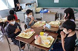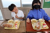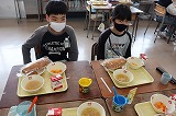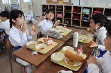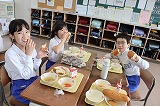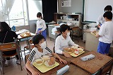 写真は5年生のようすです。おいしい給食のために食材の生産・運搬をしてくれたみなさん,調理してくれたみなさん,無償で提供していただけることへの感謝を笑顔で表現しています。今週も毎日お昼に幸せな時間を過ごすことができました。ありがとうございました。