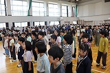 登下校を見守ってくださる「新蟹っ子見守り隊」の方々をお招きし,体育館で顔合わせ会を行いました。