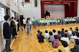見守り隊の方々に自己紹介とご挨拶をいただき、児童が日ごろのお礼を伝え、感謝の気持ちを込めた合唱を披露しました。